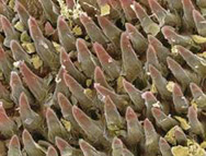Papilas gustativas de la lengua. Un humano adulto tiene unas 10.000, aunque se irán perdiendo con el paso de los años. En la imagen se puede ver la clase más común de papilas gustativas, las filiformes, que ayudan a procesar la comida y transmiten información táctil al cerebro.